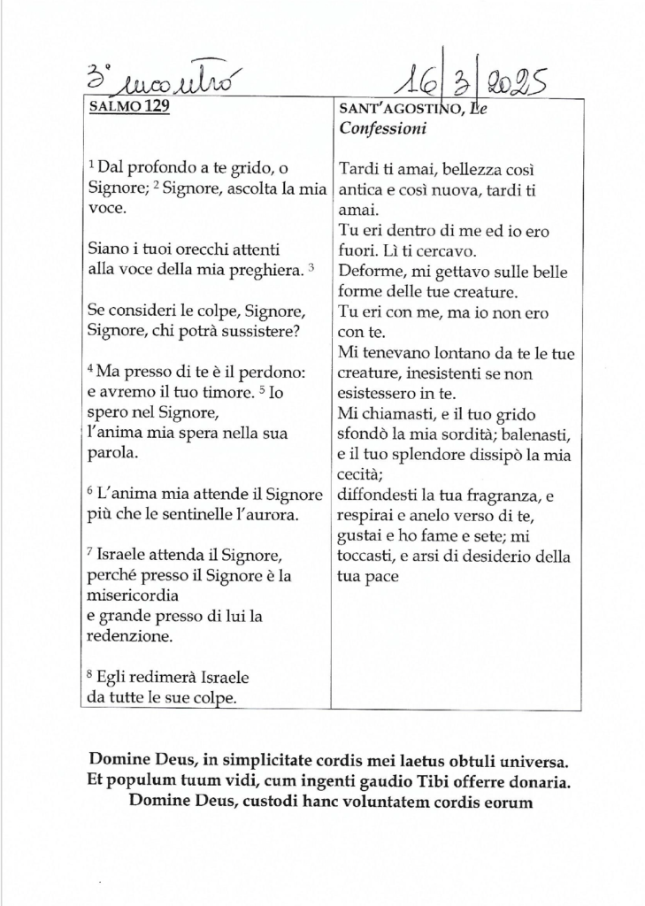 Meditare sulla preghiera allegata al Salmo, tratta dalle Confessioni di sant’Agostino