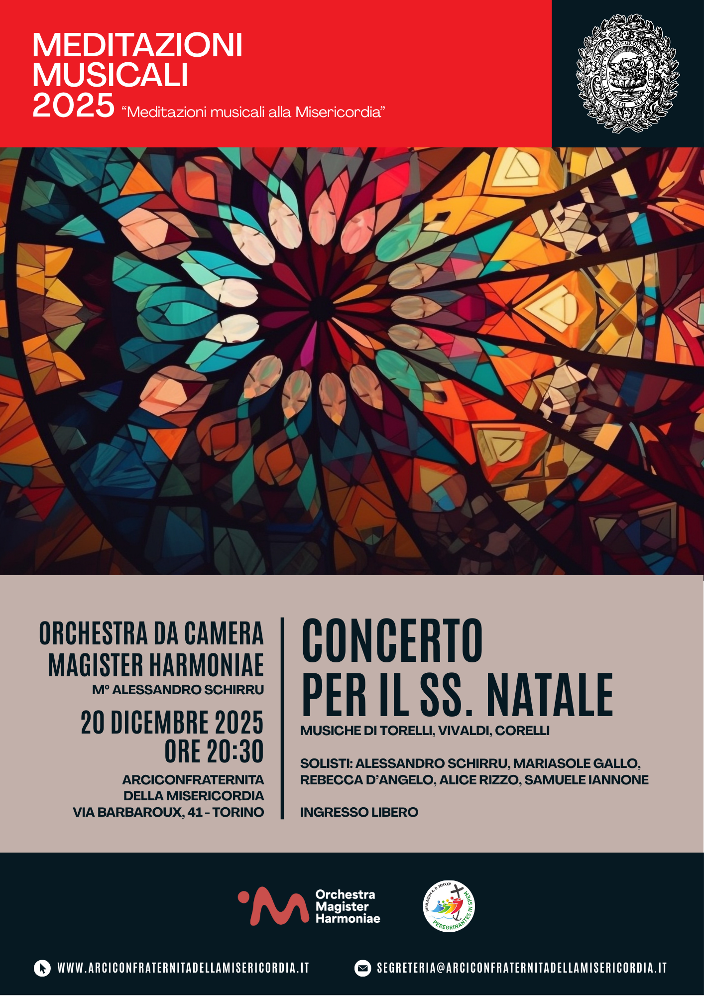 Sotto la guida spirituale di don Francesco Venuto, la produzione esecutiva del dottore Alberto Tealdi e la direzione artistica del maestro Deivis Herrera, le Meditazioni musicali alla Misericordia si inseriscono così nella tradizione storica dell’Arciconfraternita, rinnovandola attraverso la pratica musicale e aprendo uno spazio di incontro tra comunità, artisti e ascoltatori. In un contesto segnato dalla frenesia quotidiana, la rassegna invita a riscoprire l’ascolto come atto consapevole in cui la musica sacra diventa luogo di memoria, di bellezza e di esperienza interiore.